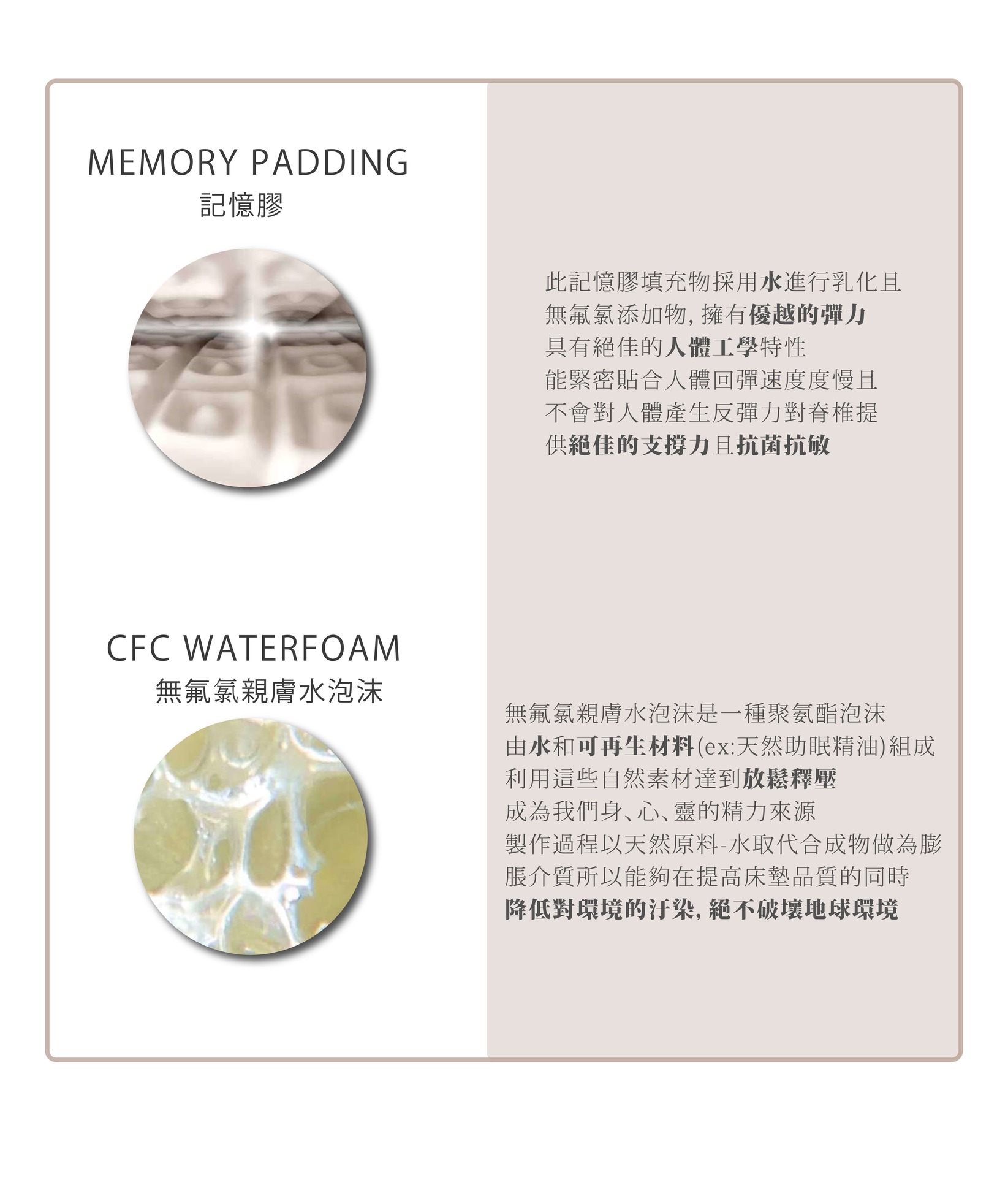使用4公分的記憶膠,具絕佳的自塑型能力,可加強床墊舒適感及放鬆感。