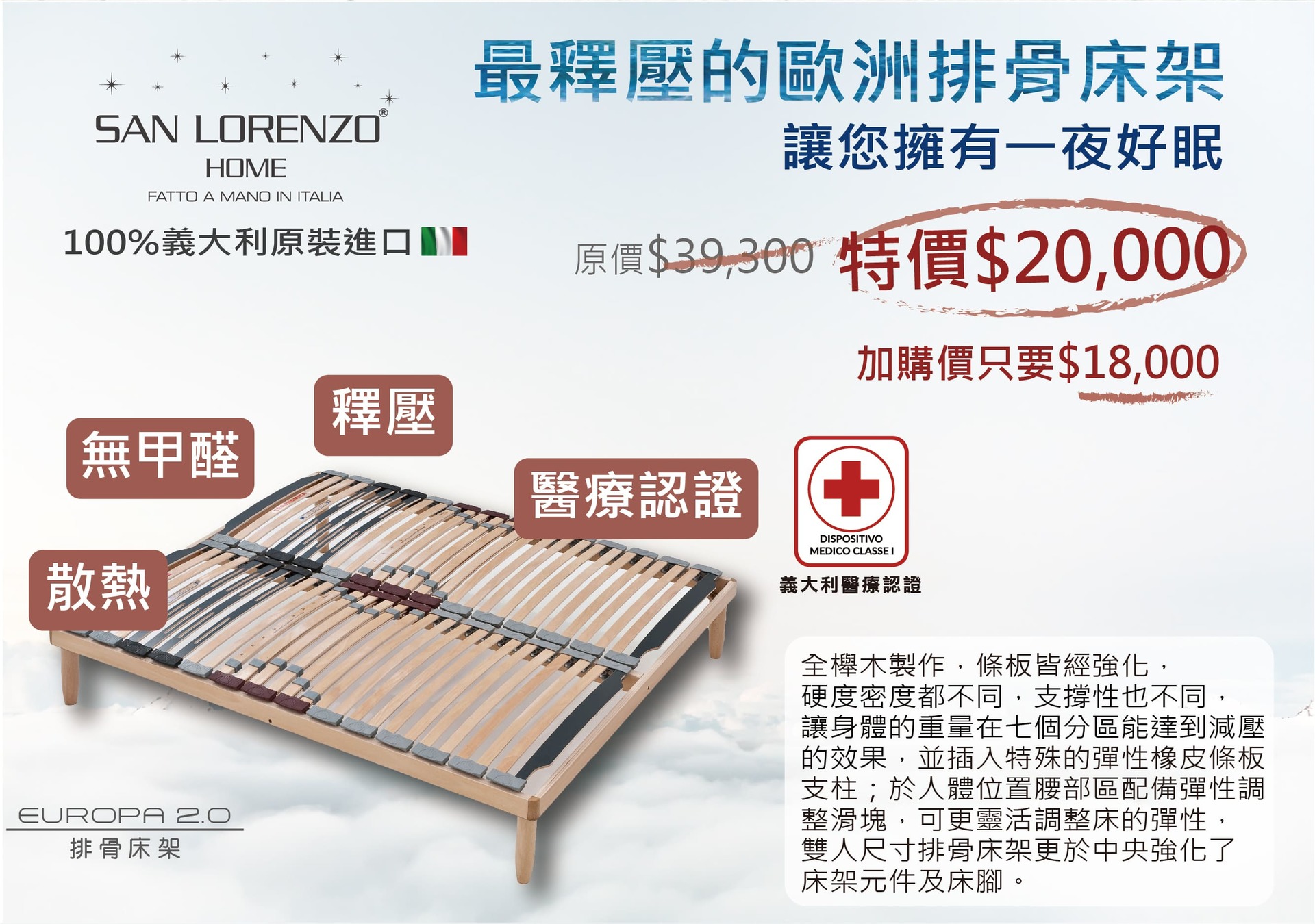聖洛倫索【義大利原裝進口名床】限時優惠活動